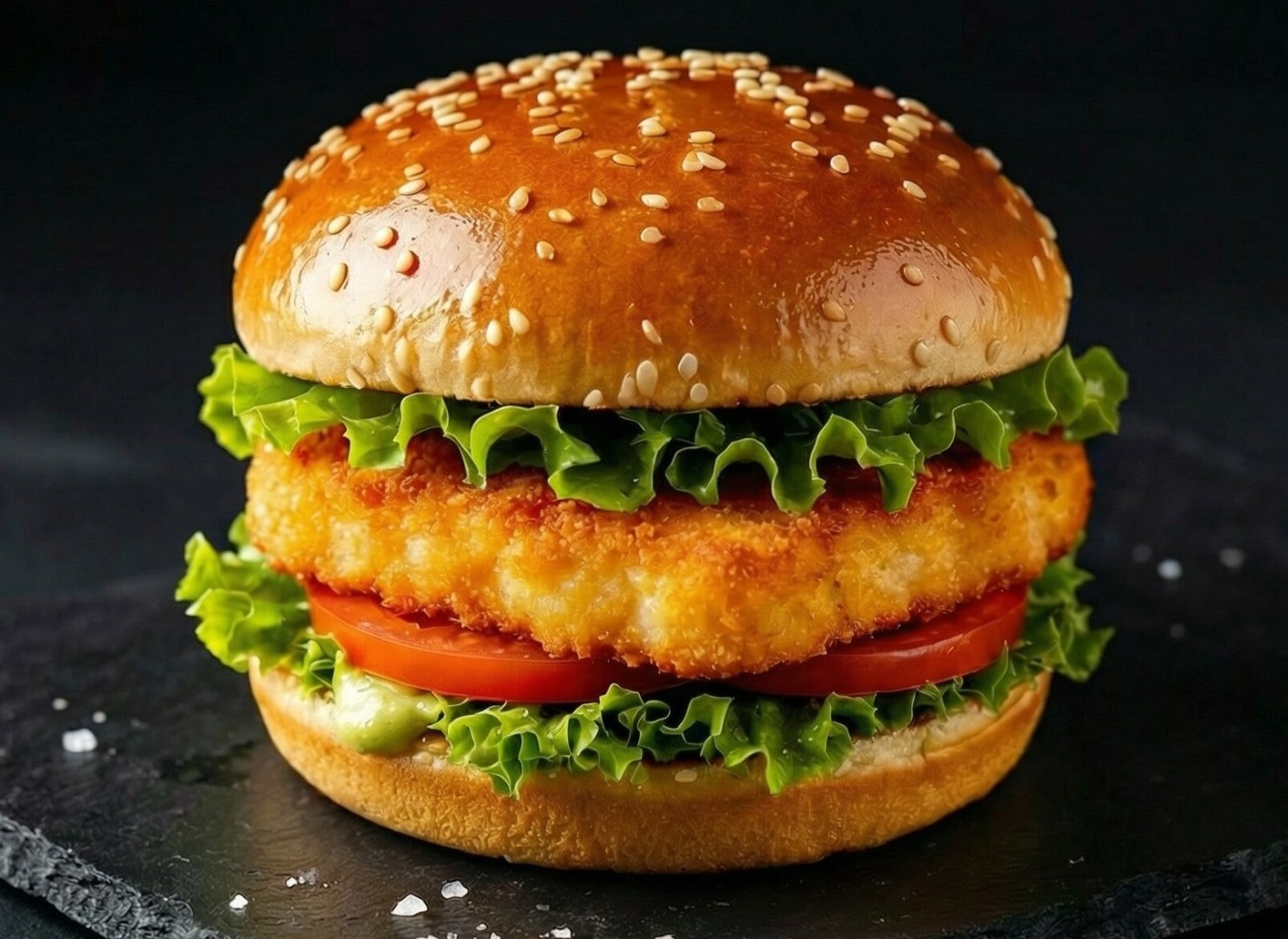 Чикен бургер — нежный вкус курицы и свежие ингредиенты.