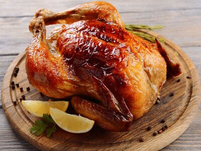 Сочный цыплёнок, зажаренный на гриле. Кожа хрустящая, мясо нежное и ароматное благодаря специям. Подаётся горячим