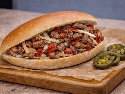 Погрузитесь в мир ярких вкусов с нашей шаурмой — сочный шашлык из говядины в мягкой лепёшке гармонично сочетается с хрустящими томатами, огурцами и луком. Нежные сливочные и пикантные томатные нотки соусов добавляют блюду особую изюминку. Эта шаурма станет настоящим открытием для ценителей вкусной еды!