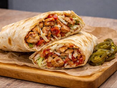 Аппетитная шаурма с куриным шашлыком в формате бургера.