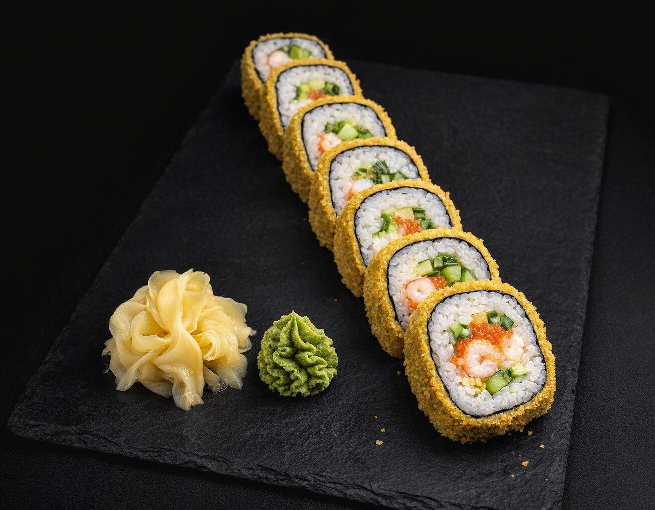 Цезарь с креветкой — ролл с креветками, огурцом и пармезаном, дополненный соусом цезарь. Лёгкий, свежий и сбалансированный вкус в оригинальном исполнении.
