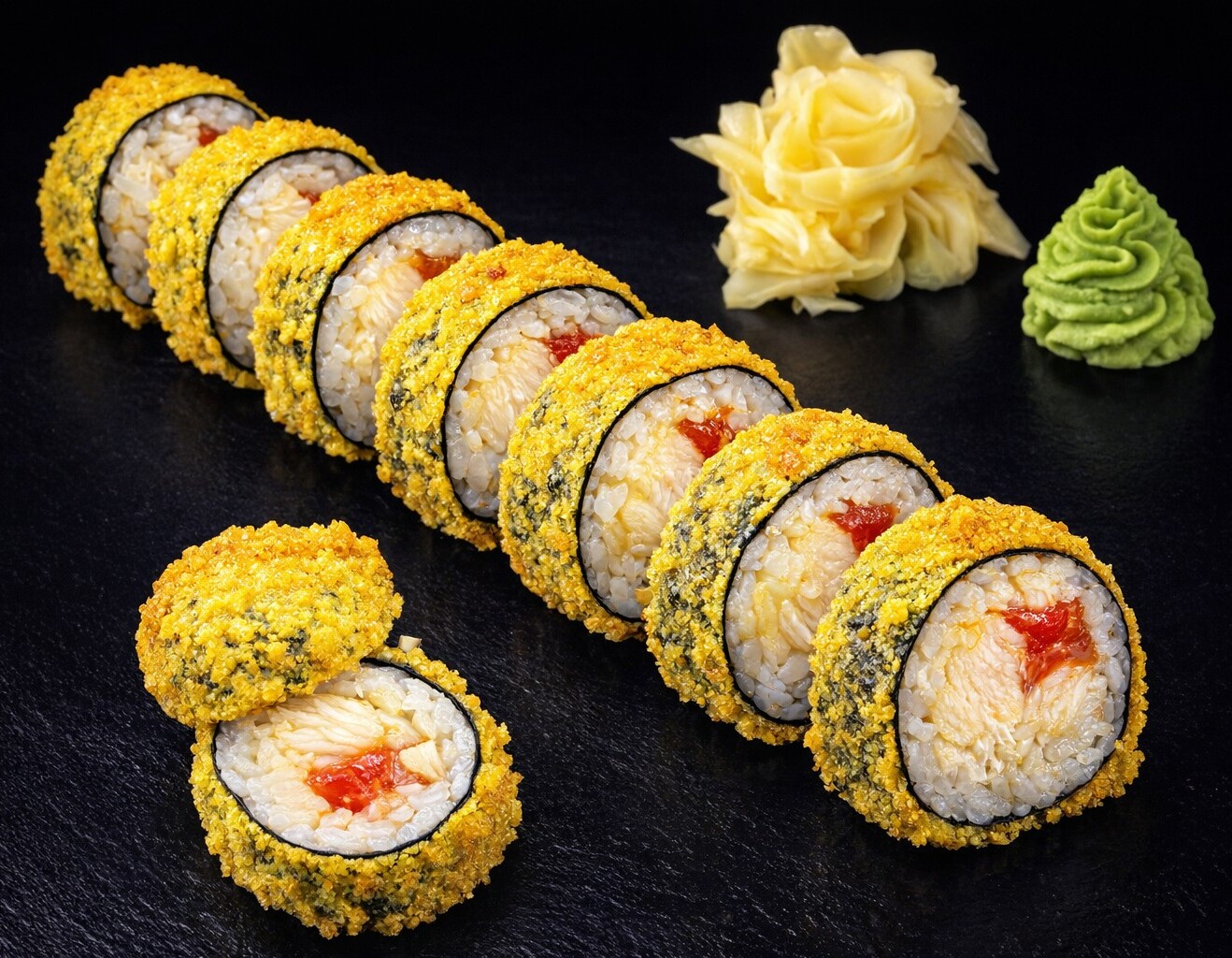 Ролл с креветкой и окунем — нежный вкус с лёгкими морскими нотками.