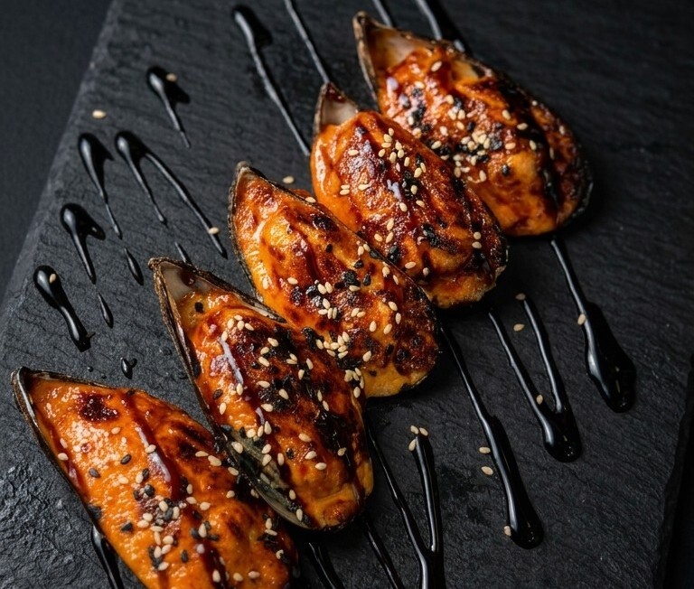 Запечённые мидии сырные — сочные мидии под нежной сырной шапочкой с кремовой текстурой. Насыщенный вкус и мягкость делают блюдо особенно аппетитным.
